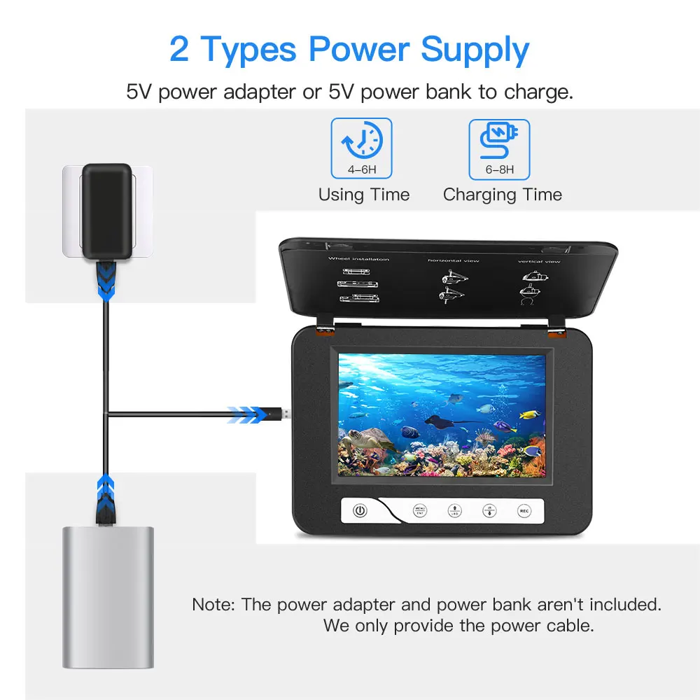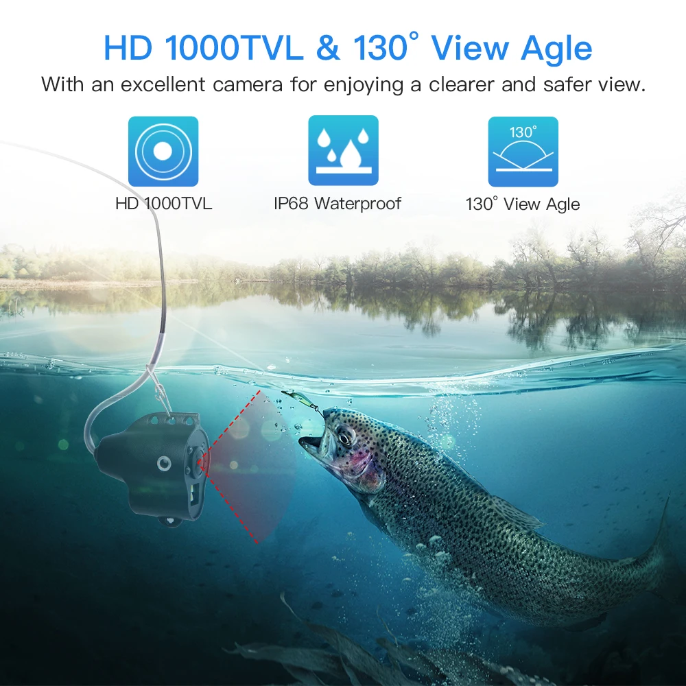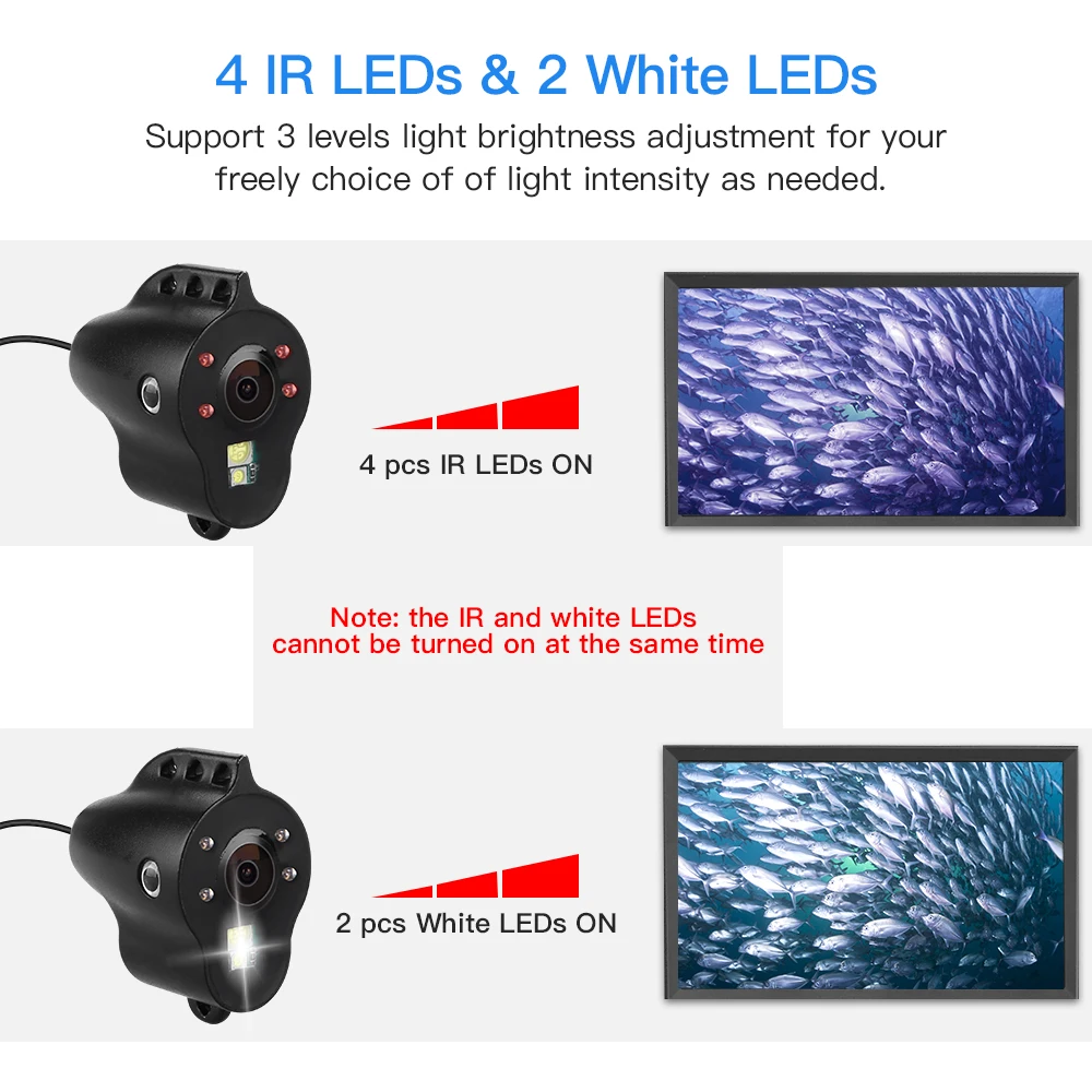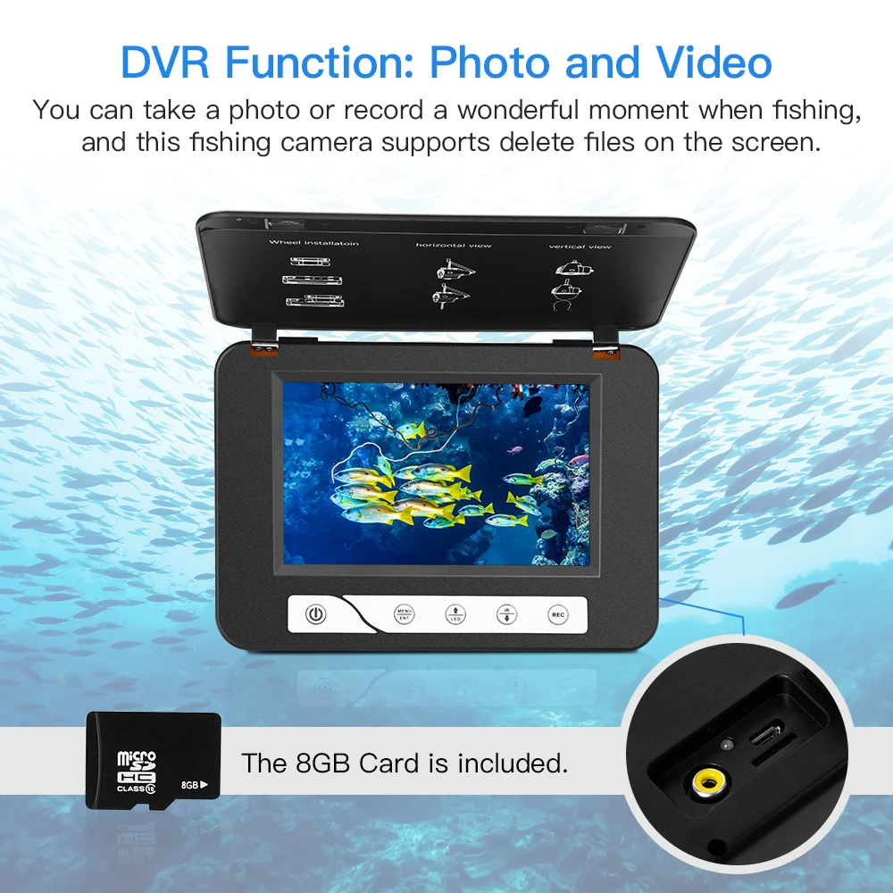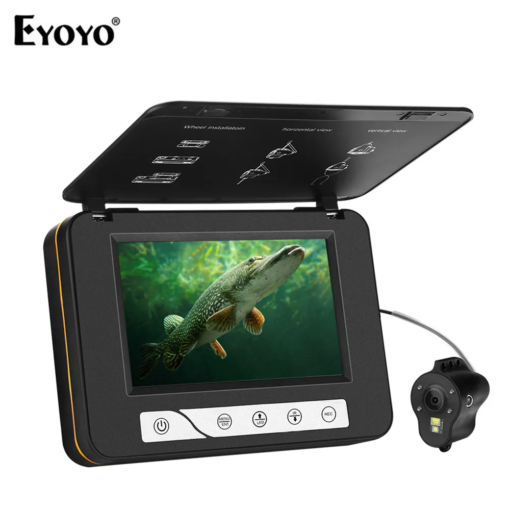 Eyoyo 15 meters 5" 800x480 resolution Underwater Fishing Camera 4pcs Infrared+ 2pcs White LED Light DVR 8GB Fishing Finder